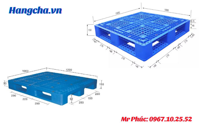 Có 2 loại pallet nhựa thường hay sử dụng là pallet 1 mặt và pallet 2 mặt.