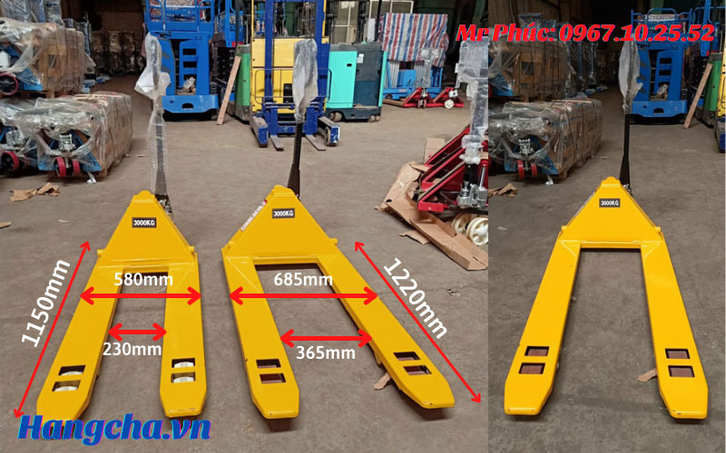 Kích thước xe nâng tay thấp càng hẹp càng rộng